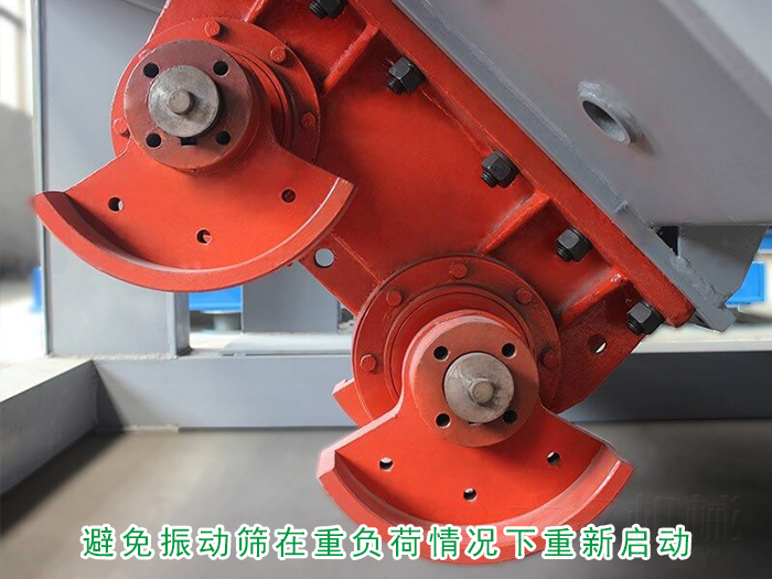 在振動篩設(shè)備故障造成突然停機(jī),會使篩箱內(nèi)充滿物料,如果在重負(fù)荷情況下再次啟動激振器,會造成激振器的聯(lián)軸節(jié)以及其他零部件的損壞。