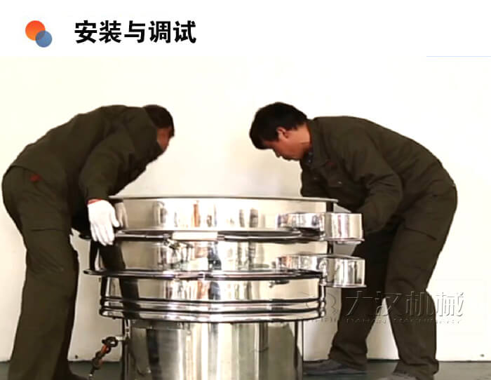 采用立式振動電機作為激振源,通過振動電機上下兩端的偏心重錘將旋轉運動轉變為水平、垂直、傾斜的三次元運動,并傳遞到旋振篩的篩面上;物料通過入料口進入設備內,根據不同物料篩分要求,物料經過1-5層采用不同目數的金屬編織篩網的篩分層,在這個過程中,位于各層的篩網下的清網裝置(硅膠彈跳球)通過頻率振動不斷撞擊篩網,使篩網上層物料能夠順暢的透網篩分,并有效解決了物料堵網問題出現,不同目數的物料通過各層對應目數的篩網后在各層的出料口排出,終實現篩選除雜或過濾分級的目的。