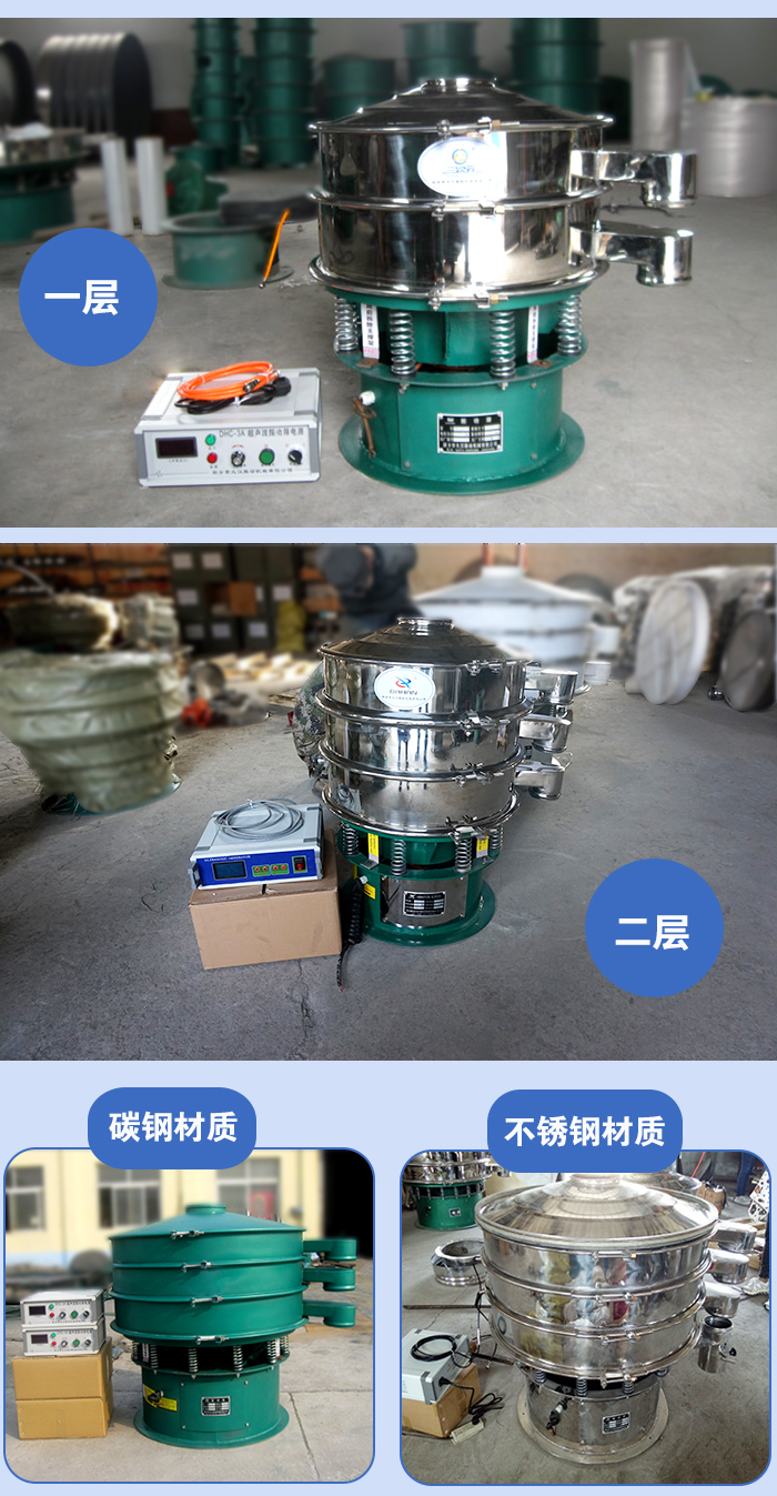 產(chǎn)品簡介:超聲波振動篩利用超聲波頻率振動篩網(wǎng),振動頻率可達每秒36000次,可使細粉狀物料在篩網(wǎng)上形成微懸浮狀態(tài),能更快地通過篩網(wǎng)而不產(chǎn)生靜電和粘在篩網(wǎng)上,篩分精度可提高80%以上,產(chǎn)量提高2-5倍。